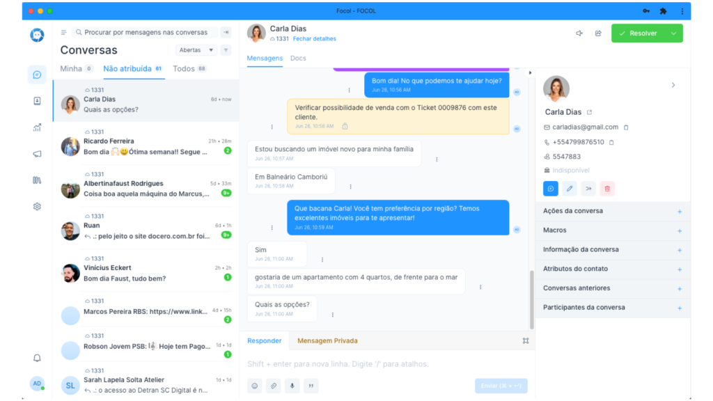A comunicação com seus clientes não tem limites, por isso com Focol você pode escrever e receber mensagens ilimitadas pelo canal do WhatsApp.